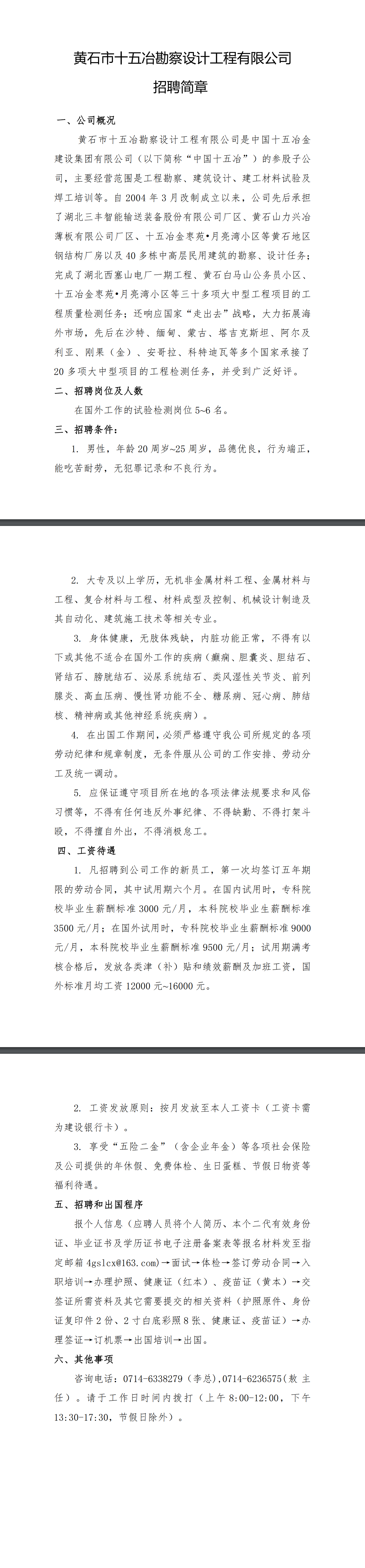 十五冶勘察设计工程有限公司招聘